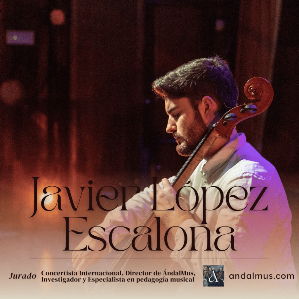 Javier López Escalona (San Roque, 1996) su fuerte personalidad e inusual aproximación a la música le han llevado a recibir los premios al Mejor Artista de Cuerda y el Tercer Premio en la XV edición del «Intercentros Melómano», el Förderpreis 2020 de la Universidad de las Artes de Zúrich (ZHdK) por su trabajo «El violonchelo en Andalucía», a ser proclamado Primer Premio del Concurso Internacional Van Wassenaer 2022 y a recibir el «Early Season Music Award 2022», a ofrecer conciertos como solista por toda Europa, en prestigiosas salas de conciertos y festivales como Muziekgebouw Amsterdam (Holanda), Fundación Hindemith (Suiza), Studio Ernest Ansermet (Ginebra, Suiza), Servais Society (Bélgica), Fundación Juan March (Madrid), Festival de Música Antigua de Zúrich (Suiza), Fundación AMIA (Estrasburgo, Francia), TivoliVredenburg (Utrecht, Holanda), Cultuurcentrum Halle (Bélgica), Festival de Música Antigua de Utrecht y ser becado por la Fundación Lyra, Freundeskreis Musik ZHdK, la Fundación Elsy Meyer o la Universidad de las Artes de Zurich. Escribe artículos para la revista Almoraima, Melómano, da conferencias en la Servais Society (Bélgica), Universidad de las Artes de Zúrich, Instituto de Estudios Campogibraltareños e imparte seminarios sobre praxis interpretativa en el Conservatorio Superior de Sevilla. Es fundador y director artístico de la Orquesta Andaluza, ÁndalMus y del Ciclo de Conciertos «Jóvenes Promesas Musicales de Andalucía».